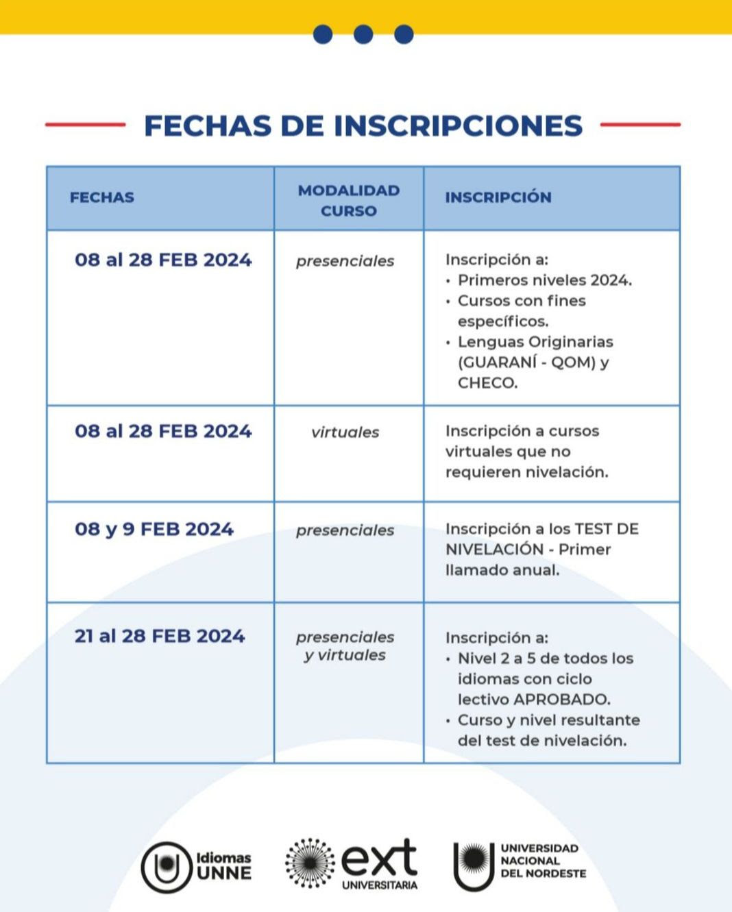 Desde el Departamento de Idiomas de nuestra universidad nos complace informarles que a partir del 8 de febrero se encontrarán abiertas las inscripciones para los cursos de idiomas.